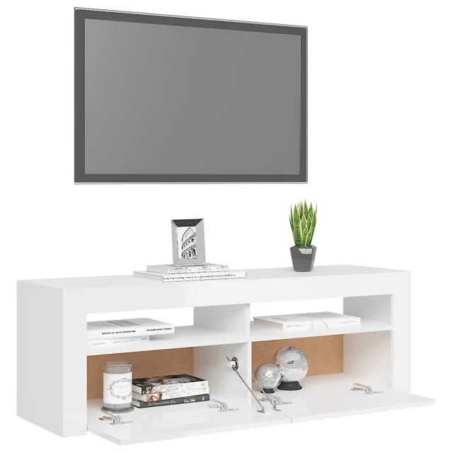 TV omarica - TV stojalo - Televizijska omarica z LED lučkami visok sijaj bela 120x35x40 cm