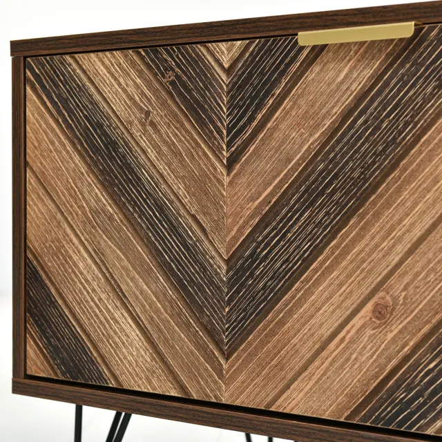 TV omarica z 2 vrati, furnir iz masivnega lesa, zlati ročaji, železne nogice.