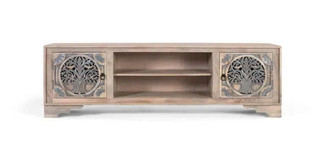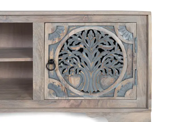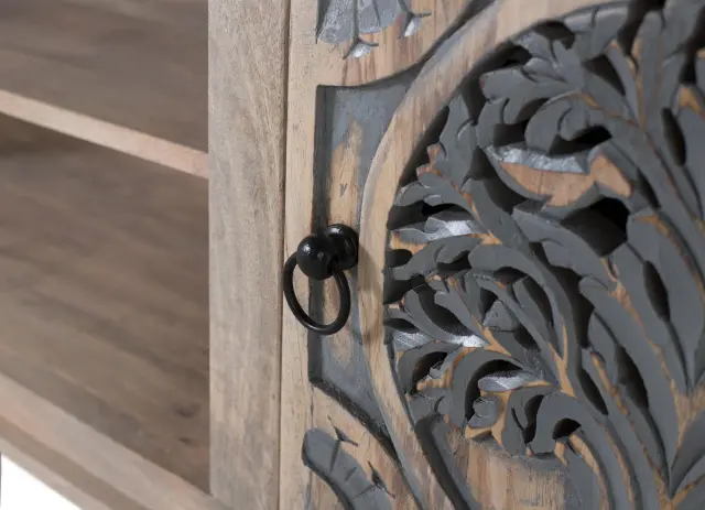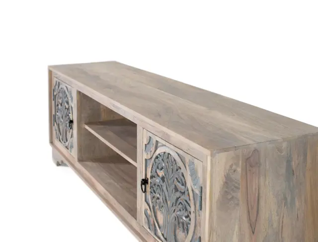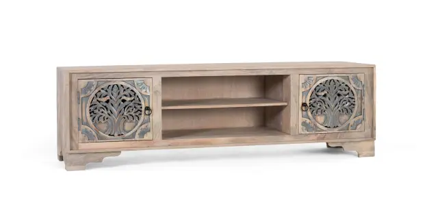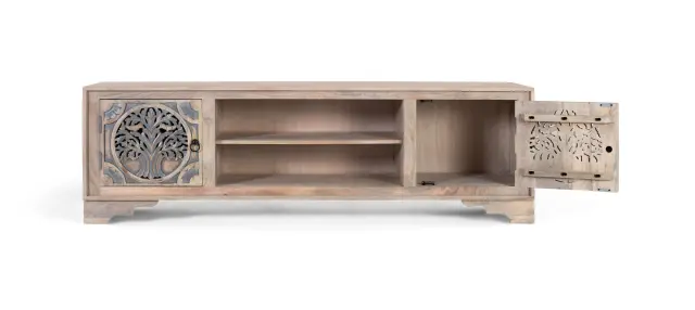 TV omarica z 2 vrati in 2 predelkoma iz mangovega lesa