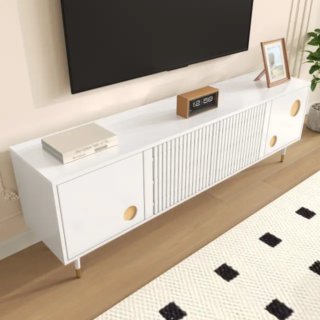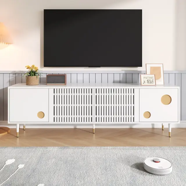 TV omarica z mrežasto strukturo in dvema vratcema iz masivnega lesa.