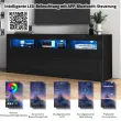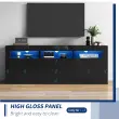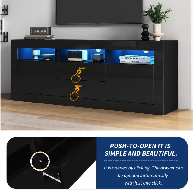 Ta 160 cm visokosijajna TV omarica ponuja sodoben dizajn, veliko prostora za shranjevanje (3 odprti predelki, 2 vrata, 2 predala) in LED osvetlitev z glasbeno funkcijo, ki jo je mogoče upravljati prek aplikacije.