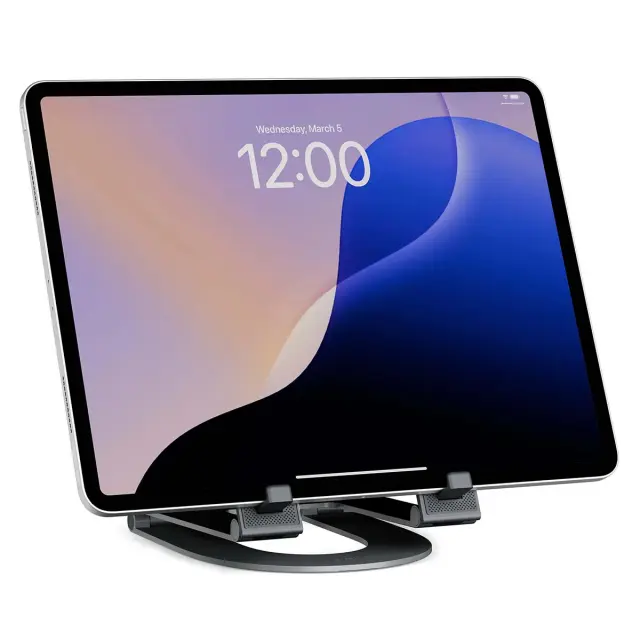 Stojalo je združljivo s tabličnimi računalniki s premerom do 12,9 palca.. Nastavljiva višina in kot za vsako uporabo. Izjemno kompaktna zložljiva zasnova za enostaven transport. Nedrseče noge za odlično stabilnost.