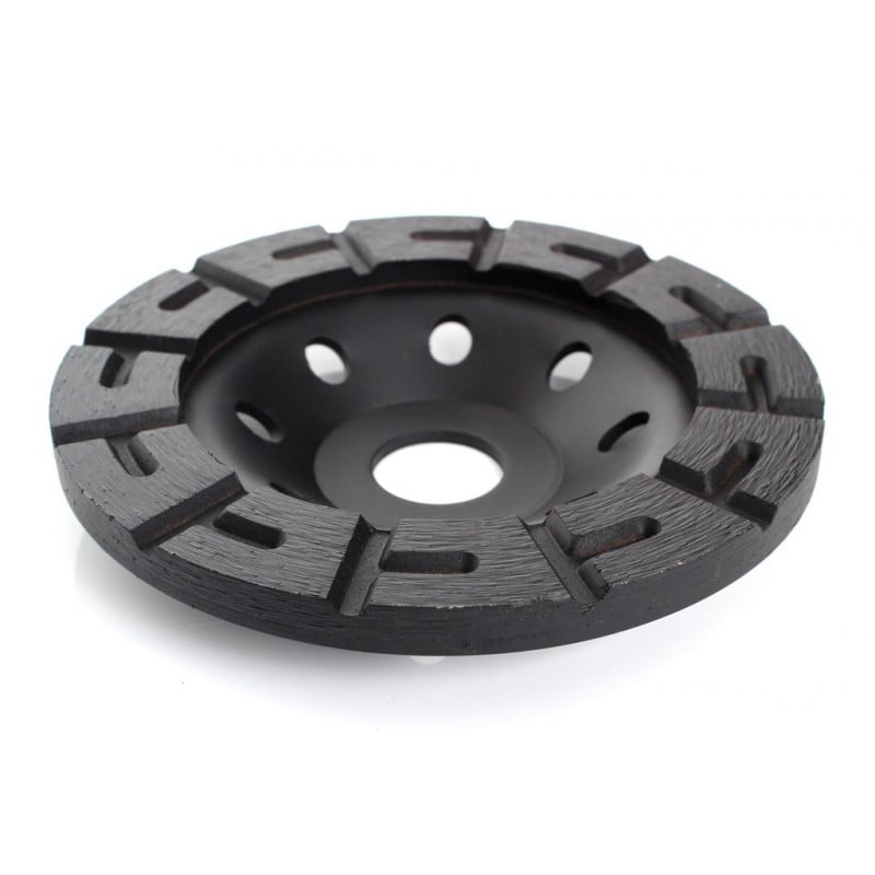 Diamantna plošča za brušenje betona je idealna za brušenje betonskih površin in podobno. Odstrani vse neravnine, grudice, grče, umazanijo itd. Brusilni element je postavljen na dvojni segment, kar poveča delovno učinkovitost v primerjavi z diski z enim segmentom. Uporaba: Idealno za zelo trde in srednje trde kamne. Beton, keramična opeka, tlakovci, pločevine, terasne ploščice. premer – 125 mm montažna luknja – 22,23mm višina nanosa: 4mm za mokro in suho brušenje Hladilne luknje podaljšajo življenjsko dobo