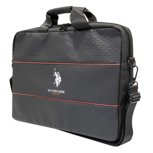 Trezen, sodoben dizajn z gladko, nagubano teksturo z logotipom U.S. Polo v središču osrednje črte.. Ima prostor za shranjevanje, 2 žepa z našitki na notranji strani in zunanji predal.. Opremljen z odstranljivim naramnim pasom. Ta torba ima izvezeno najlonsko zanko, da jo lahko pritrdite na ročaj kovčka..