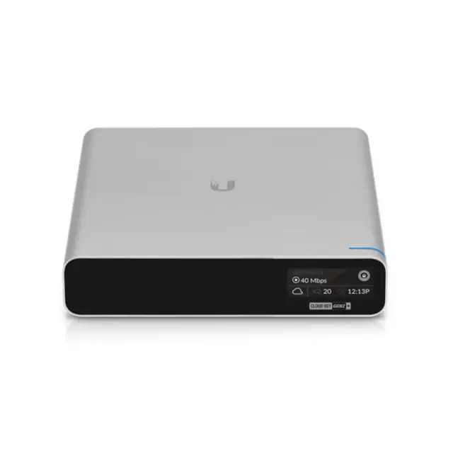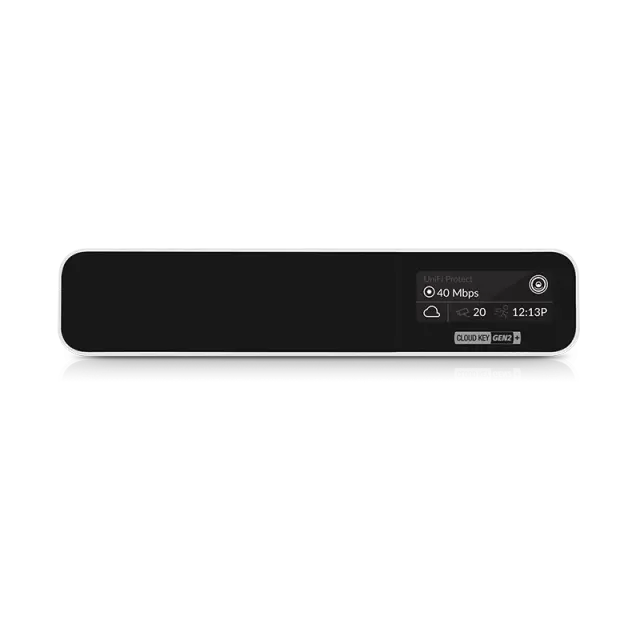 Upravljajte omrežne in video naprave UniFi hkrati z novo večnamensko aplikacijo UniFi Cloud Key G2 Plus. Zasnovan za enostavno uvajanje, lahko Cloud Key G2 Plus hitro konfigurirate prek Bluetooth z uporabo mobilnih aplikacij UniFi. Zaslon na sprednji plošči prikazuje vitalne statistike sistema za vašo omrežno strojno opremo UniFi in video kamere UniFi Protect. Vgrajena baterija zagotavlja zaščito pred izgubo energije. Za shranjevanje videoposnetkov vključuje tudi 1 TB HDD, ki ga je mogoče nadgraditi na 5 TB.