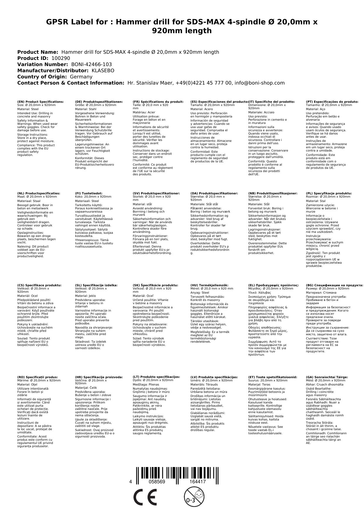Ta vrhunski udarni vrtalnik za SDS-MAX sistem je idealen za zahtevna vrtanja v trdih materialih. Z 4 rezili, premerom 20 mm in dolžino 920 mm ponuja izjemno natančnost in učinkovitost.