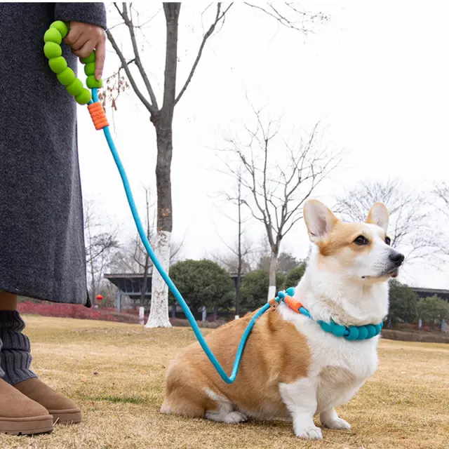 Stilsko in funkcionalno: Ta povodec ni le praktičen, ampak tudi eleganten! Živahna barva in edinstven dizajn z oblazinjenjem iz bombaža dodata pridih osebnosti vašim vsakodnevnim sprehodom s kosmatim prijateljem.