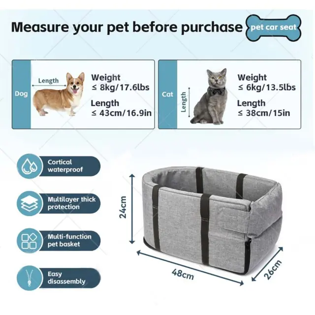 Udobna in odstranljiva avtomobilska postelja za hišne ljubljenčke Grey