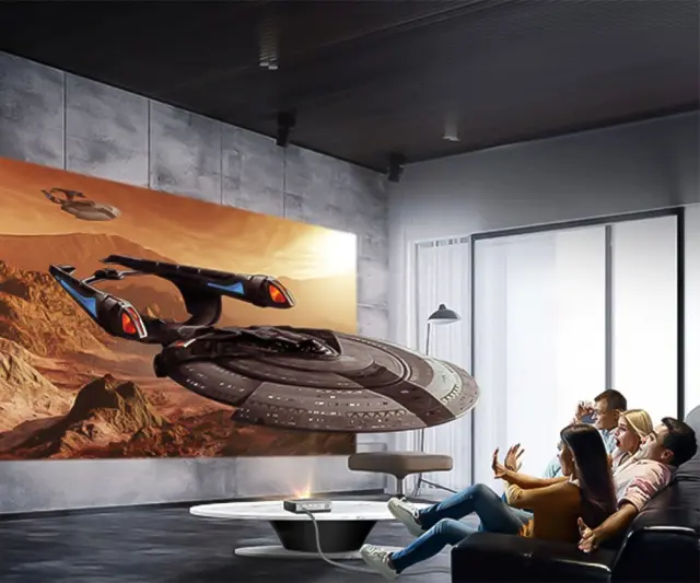 Projektor UFO U50 Pro predvaja vrhunsko RGB LED sliko, ki jo lahko projicirate do maksimalne velikosti 300" (diagonala 7,62m), ki je kar 16-krat večja kot 70" TV sprejemnik!
