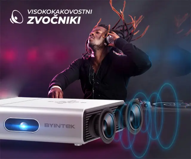 Podjetje BYINTEK predstavlja najnovejši in ultra zmogljiv prenosni Android projektor UFO U50 Pro. Projektor kompaktnih dimenzij in modernega izgleda v sebi skriva odlične lastnosti in napredno opremo, ki bo poskrbela za najboljšo uporabniško izkušnjo. Ne verjamete? Prepričajte se sami in pustite, da projektor poskrbi za predvajanje in ogled vaših najljubših vsebin, kjerkoli in kadarkoli!
