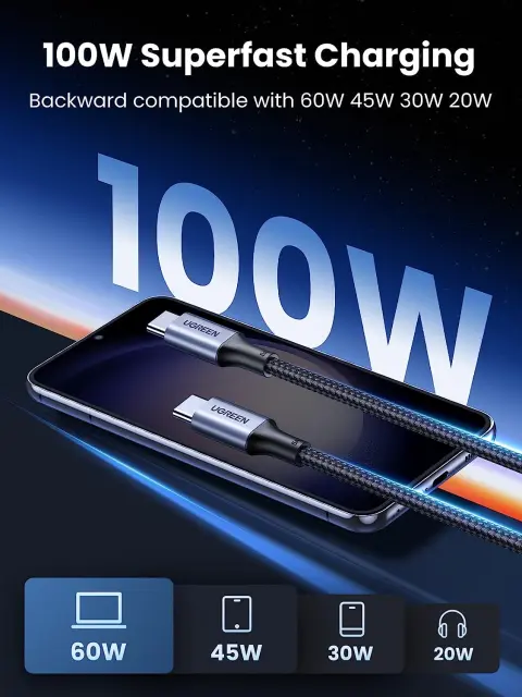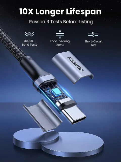 vgrajen pametni čip E-marker, kabel UGREEN USB C lahko poveča hitrost polnjenja za 80 % in stabilnost polnjenja za 90 %, kar vam zagotavlja varnejšo in stabilnejšo izkušnjo polnjenja.