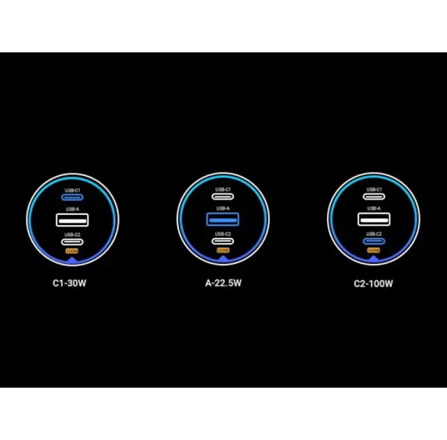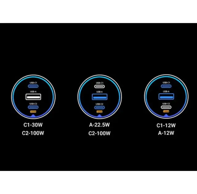 Ugreen 130W 3-portni avtomobilski polnilec