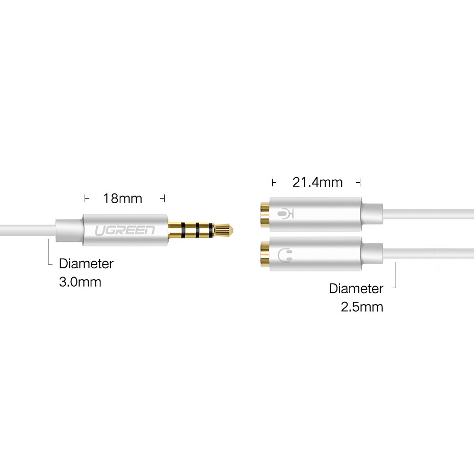 Ugreen 3.5mm Headphone Splitter with Microphone - 20cm Silver AUX Cable
