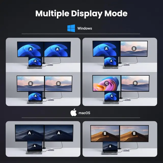 Priklopna postaja bo priklopila dva zaslona na oba vrata HDMI v 4K@60Hz max, zaradi česar so večopravilnost med zasloni in ustvarjalni delovni tokovi še učinkovitejši. Preverite, ali vaša gostiteljska naprava podpira video izhod