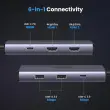 UGREEN USB C Hub dual HDMI je zasnovan tako, da zagotavlja vse vaše potrebe povezljivosti. Dve vrati HDMI, 100 W vrata USB-C PD, 5 Gbps podatkovna vrata USB-C in dve podatkovni vrati USB-A.
