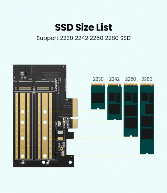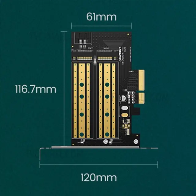 UGREEN 70504 PCIe na M2 adapter M.2 NVME na PCI-E 3.0 razširitvena kartica z M.2 SATA podporo in 32Gbps/6Gbps prenosom podatkov