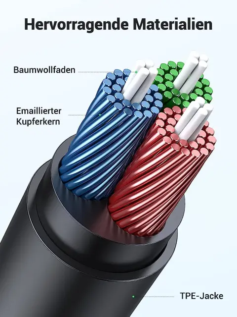 visokokakovostni priključki 24K in emajlirano bakreno jedro zagotavljajo stabilen prenos kakovosti zvoka brez izgub.