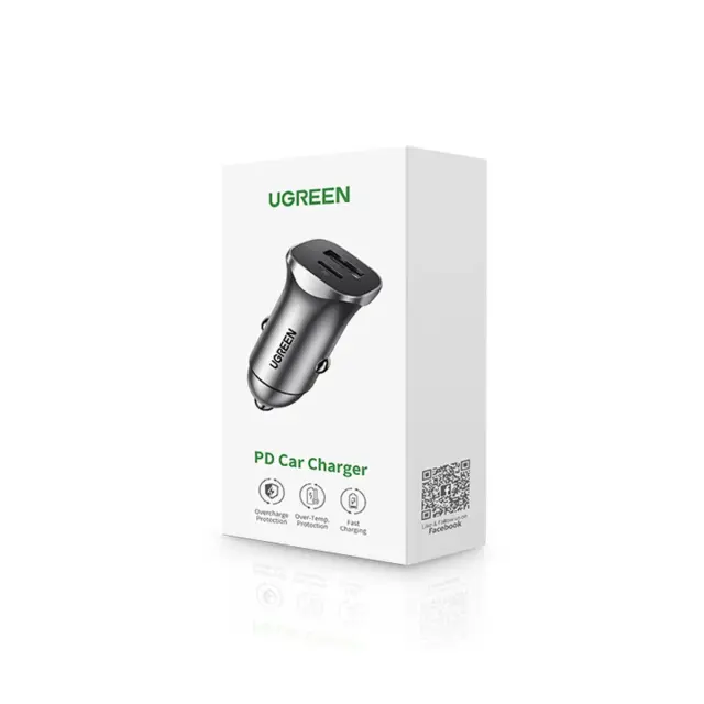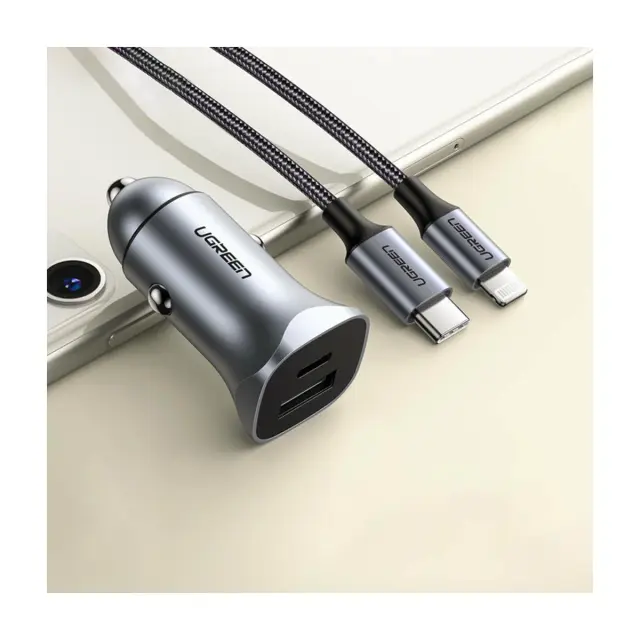 Avtomobilski polnilec UGREEN 30W USB-C iz aluminijeve zlitine s funkcijo hitrega polnjenja PD 3.0/QC 3.0.