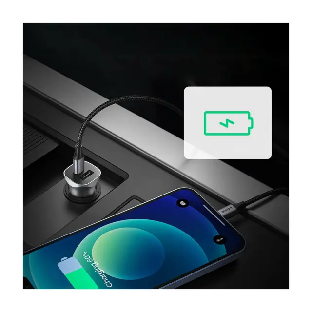 avtomobilski polnilnik UGREEN USB C zagotavlja 30 W moči in lahko inteligentno in samodejno zazna vašo napravo ter zagotavlja hitro in učinkovito prilagodljivo 30 W moč. Polnite svoje naprave PD, kot so mobilni telefoni iPhone, iPad in Galaxy, z bliskovito hitrostjo hkrati. iPhone 13 Pro Max se napolni od 0 % do 60 % v samo 30 minutah