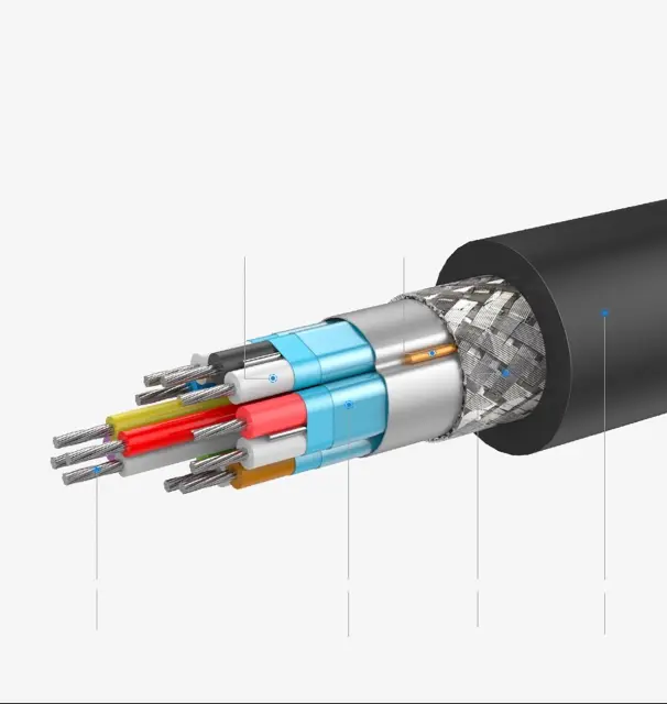 Izdelan iz trojnega ščita, pozlačenih kontaktov in bakra 28AWG OFC, ki zagotavlja prenos signala brez motenj, z gumbom za sprostitev za enostavno in varno povezavo.