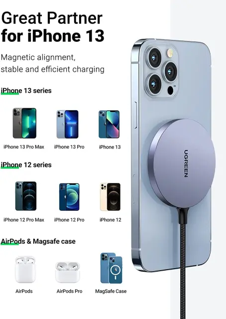 UGREEN magnetni brezžični polnilec za iPhone 13/12, AirPods 2/AirPods Pro