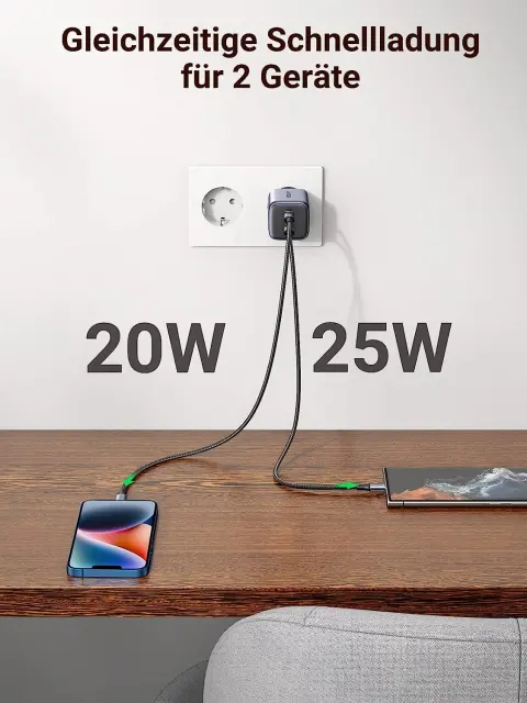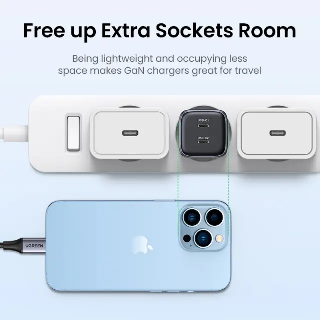 s super hitrim čipom GaN II - posebej za serijo Nexode - dobite revolucionarno zmogljivost in neverjetno velikost. Ugreen Nexode 45 W GaN II 2-vratni polnilnik USB C lahko napolni vaš Galaxy S23 Ultra 100 % v samo 60 minutah s 45 W super hitrim načinom polnjenja 2.0. Drugi polnilniki brez PPS 4,05 A ali manj kot 4,05 A ne morejo podpirati super hitrega polnjenja 45 W Galaxy, tudi če imajo moč 45 W, 65 W ali 100 W.