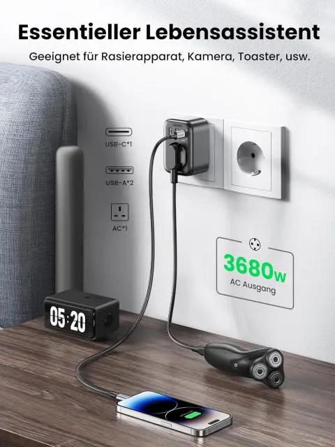 S to vtičnico 4 v 1 lahko priročno polnite in uporabljate svoj pametni telefon, brivnik, power bank, iPhone, slušalke in celo najzmogljivejše naprave, kot so prenosni računalniki, britvice, projektorji, kamere, aparati za kavo, opekači kruha, sokovniki.