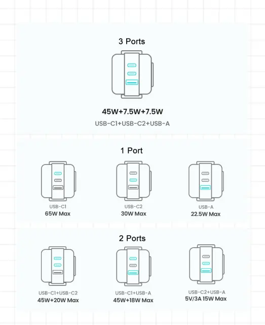 z 2 vhodoma USB C in 1 vhodom USB A je naš polnilnik združljiv z različnimi napravami.