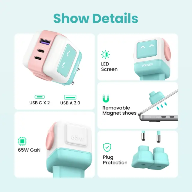 Polnilnik USB C s 65W združuje funkcionalnost z igrivostjo.