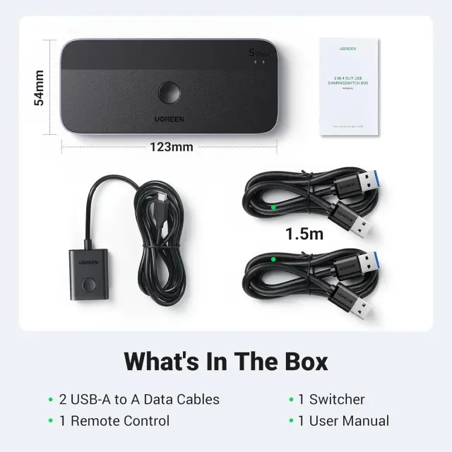 UGREEN USB 3.0 stikalo, 2 računalnika, ki si delita naprave USB C & A, 4-vratni USB preklopnik, ki si deli tipkovnico in miško, tiskalnik/skener, USB stikalo za dva računalnika z 2 kabloma USB3.0 in daljinskim upravljalnikom
