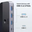 Stikalo USB 3.0 nudi 1 vrata USB C in 3 vrata USB A za podporo povezovanja različnih naprav USB. Vrata USB C je mogoče povezati z zvezdiščem USB C ali drugimi napravami USB C, kar razširi več vrat za dva računalnika.