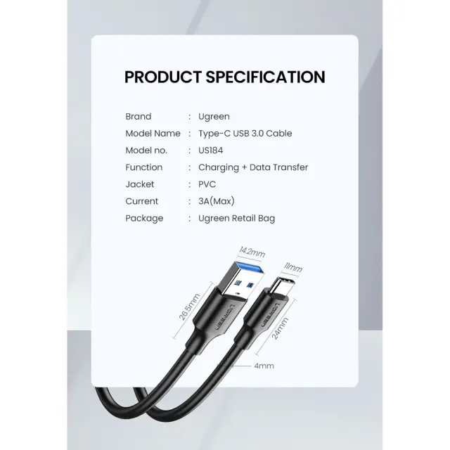 Ugreen USB 3.0 na USB-C kabel je visoko kvaliteten in zmogljiv kabel za vse vaše naprave z USB-C konektorjem.