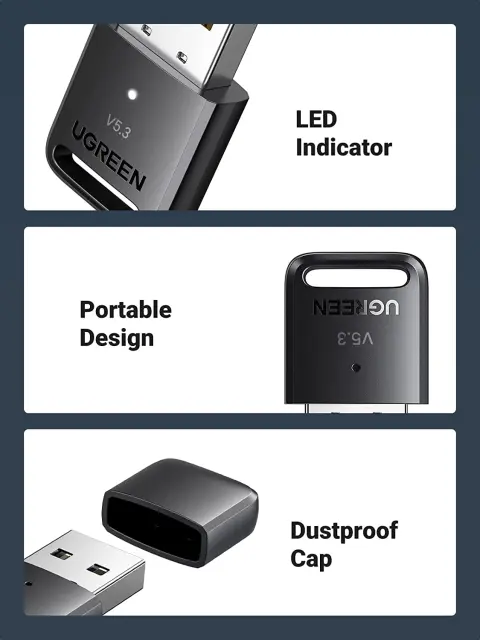 Bluetooth ključ UGREEN V5.3 za osebni računalnik uporablja najnovejši 5.3 Bluetooth, pomaga osebnemu in prenosnemu računalniku, opremljenemu s funkcijo Bluetooth, ter se enostavno poveže z napravami Bluetooth, s hitrejšo hitrostjo prenosa, večjo učinkovitostjo in nižjo zakasnitvijo.