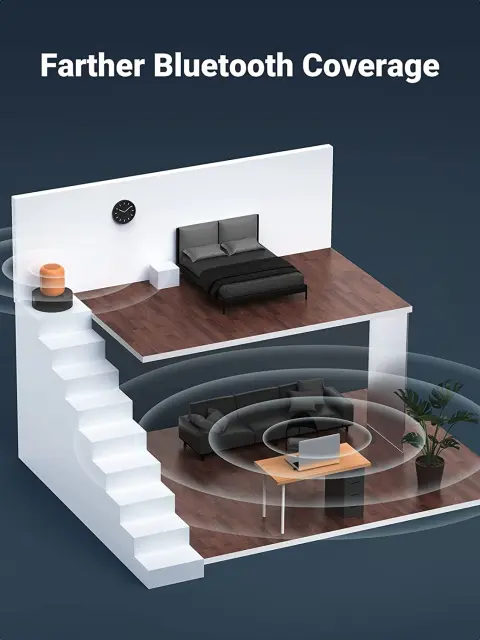 UGREEN V5.3 USB Bluetooth adapter je značilen po visoki hitrosti prenosa 2 Mbps, dobri stabilnosti in močni zaščiti pred motnjami. Razdalja prenosa je do 20 metrov na odprtem prostoru.