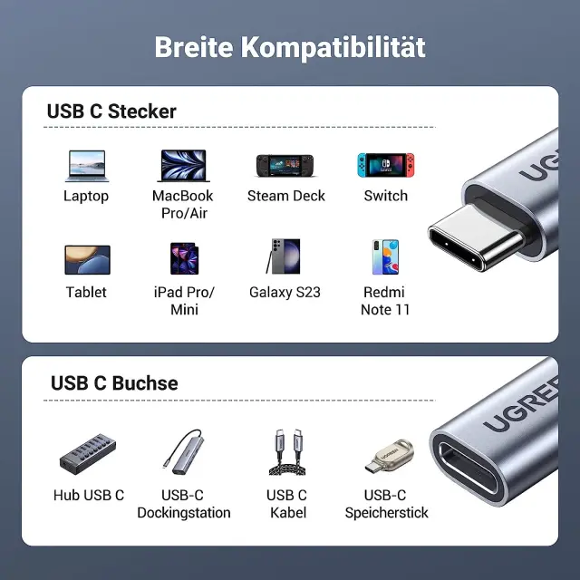 USB C podaljšek je primeren za USB C prenosnik, tablico, pametni telefon, USB C zvezdišče kot tudi monitor. Združljiv je z 2023/2022 MacBook Pro M2, MacBook Pro 13 (2022), M2 MacBook Air, iPad Pro 12.9 2021, Dell XPS 15, Spectre x360, Surface Book 3, Surface Pro 7, MateBook, Galaxy S23 Ultra, S23+, S2, S2, S2, S21, S20, Note 20, stikalne konzole steam deck itd.
