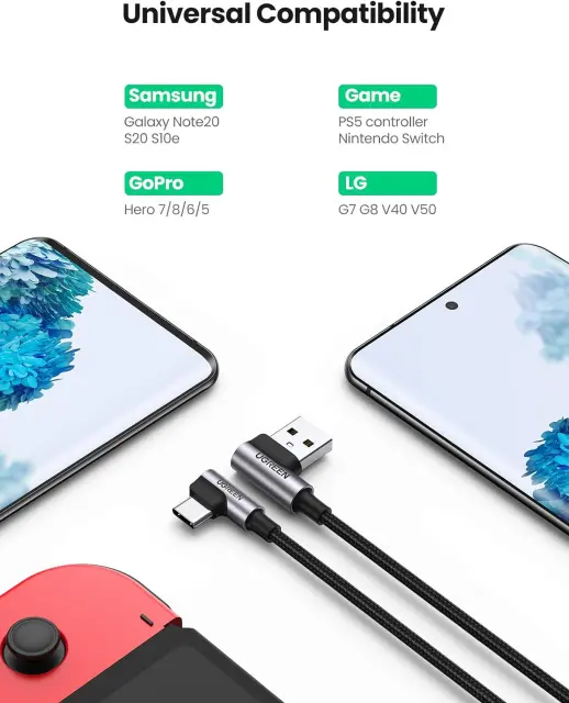 Kabel UGREEN USB A v USB C je združljiv z iPhone 15 Series/Samsung Galaxy Series/iPad Mini /Pro /air/ LG G7 G8 V50 V60/Nintendo Switch/GoPro Hero 8 Google Pixel, drugimi napravami tipa C