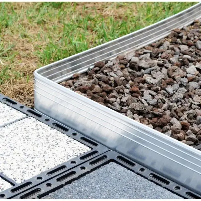 Za montaža: Izmerite dolžino, razporedite robno travo, pritrdite z dodanimi elementi ali zemljo. Dodatni koti in spojniki zagotavljajo stabilnost na križiščih. Ta alu robna trava je idealna za vrtnarje, ki želijo trajno in lep dizajn brez vzdrževanja.