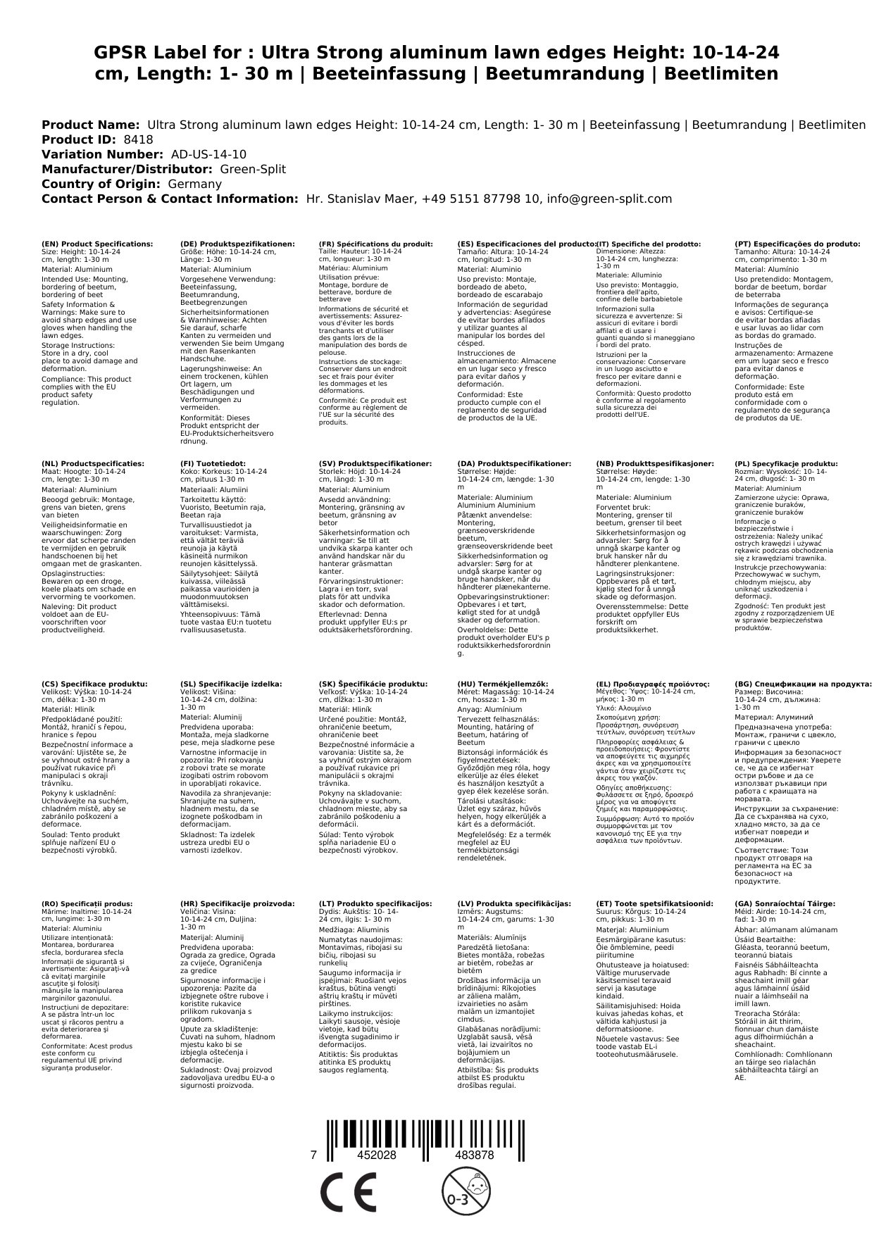 Ta robna obloga je popolna za tiste, ki cenijo trajnost in moderan dizajn v vrtu. Primerna je za različne uporabe, kot so obroba gredic ali omejitev trata, in zagotavlja čisto, urejeno podobo brez napora.