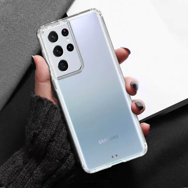 Zaščitna torbica posebej zasnovana za Samsung Galaxy S21 Ultra -. Učinkovito ščiti vašo napravo pred vsakodnevnimi udarci in praskami. Odporni na udarce, ojačani vogali za optimalno zaščito vaše naprave. Dvomaterialna prevleka po meri iz fleksibilnega gel silikona in odpornega polikarbonata.