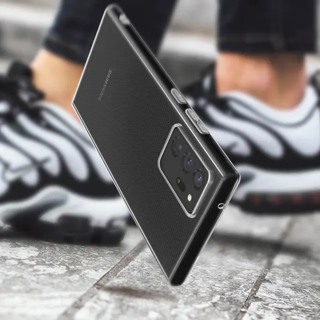 Zaščitna torbica posebej oblikovana za Samsung Galaxy Note 20 Ultra. Učinkovito ščiti pred vsakodnevnimi udarci in praskami. Izdelana iz silikonskega gela, prožna in odporna. Tanka, lahka in diskretna vsakodnevna zaščita.