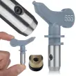 Rosfix UltraHeavy 555 spray nozzle designed for precise application of plaster, putty, and bituminous materials. Suitable for professional and DIY use, it allows efficient coverage of large surfaces with easy control of spray width and opening size.
