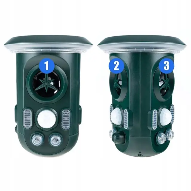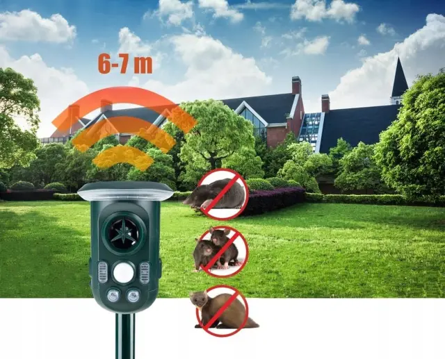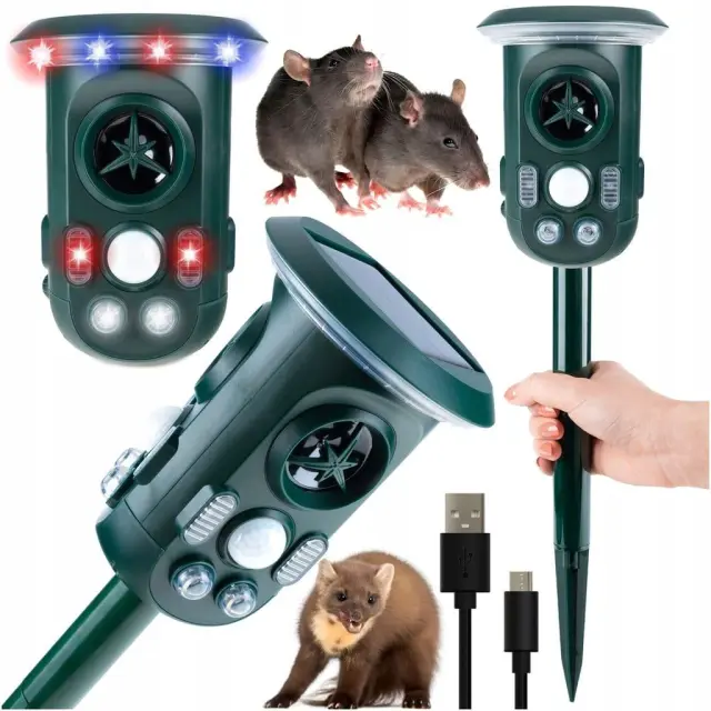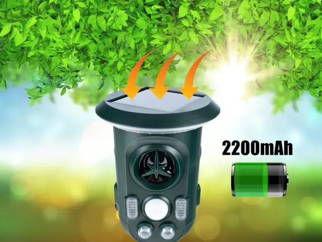 Naprava oddaja visokofrekvenčne ultrazvočne valove, ki odganjajo živali, ne da bi jih poškodovali. Z vgrajeno 2200mAh akumulatorsko baterijo in sončnim napajanjem omogoča neprekinjeno delovanje v vseh pogojih.