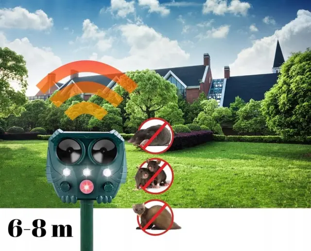 Ultrazvočni aku. 800mAh LED solarni odganjalec živali s senzorjem gibanja je popolna rešitev! Ta naprava oddaja visokofrekvenčne ultrazvočne valove, ki učinkovito odganjajo mačke, pse, glodavce, ptice, kune in druge živali – brez uporabe kemikalij in škodljivih sredstev.