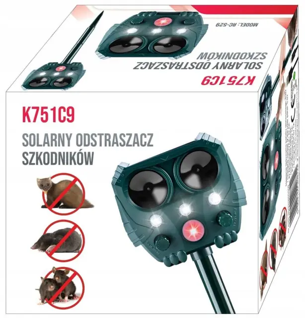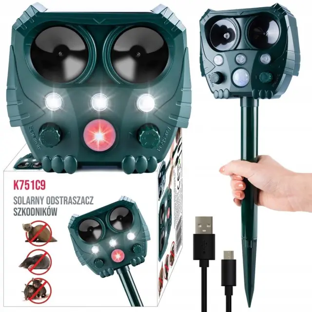 Z vgrajenim PIR senzorjem gibanja, LED utripajočimi lučmi in solarno polnjenje zagotavlja učinkovito zaščito pred škodljivci. Kompaktna in odporna zasnova omogoča delovanje v vseh vremenskih razmerah!