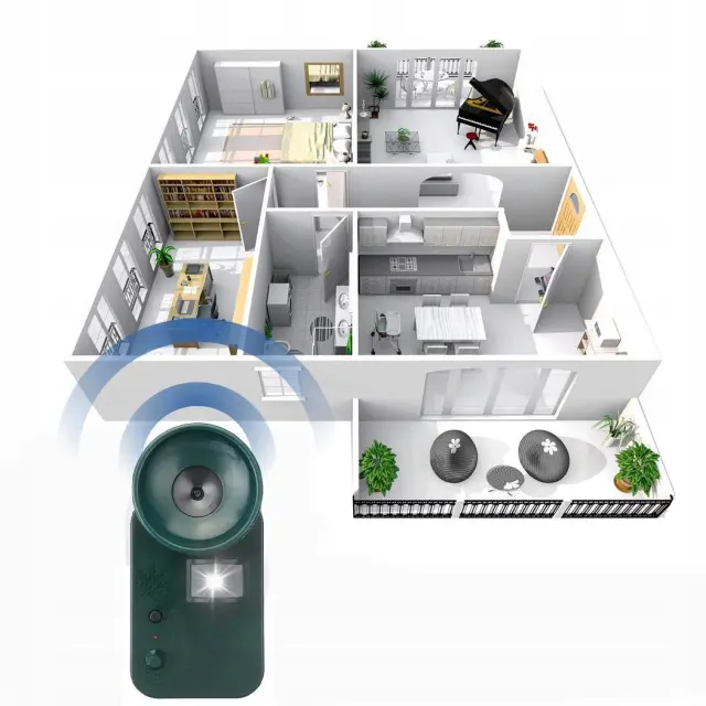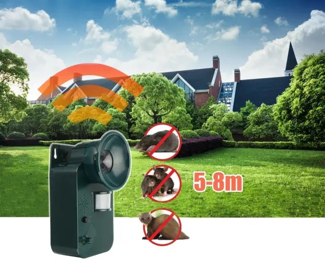 Senzor gibanja: Vgrajen senzor gibanja zaznava premikanje v območju delovanja in samodejno aktivira ultrazvočne valove, ko zazna prisotnost živali. To omogoča ciljno usmerjeno delovanje in večjo učinkovitost pri odvračanju nezaželenih obiskovalcev.