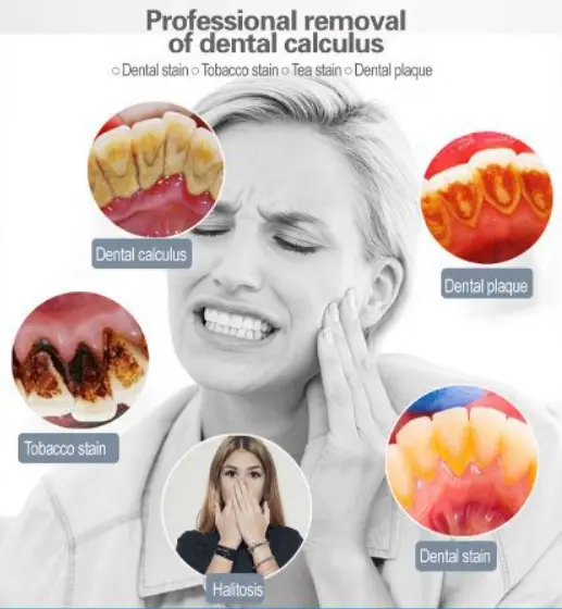 Temeljito čiščenje: Čistilec zob ima 5 načinov čiščenja in deluje z ultrazvokom, ki učinkovito odstranjuje zobne obloge, zobni kamen in madeže na zobeh. Ultrazvok ima frekvenco vibracij 31000 krat/min.