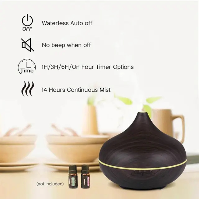 Popoln detajl za dom ali pisarno: vlažilec zraka v elegantnem dizajnu z lesenim vzorcem, popoln za aromaterapijo in sprostitev v duhu zena.