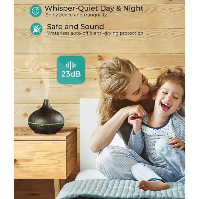 Atmosferična in dekorativna: aroma lučka je tudi okrasna nočna lučka/razpoloženjska lučka s 7 barvnimi LED lučkami in nastavitvijo časovnika. Izbirajte med izmeničnimi barvami ali svojo najljubšo barvo. S časovnikom lahko nastavite čas pršenja na 1 uro, 3 ure, 6 ur ali neomejeno. Funkciji luči in pršenja se lahko uporabljata neodvisno eno od druge.