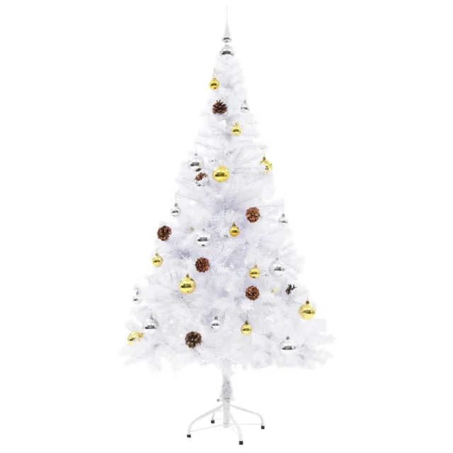 Umetna novoletna jelka z bučkami in LED lučkami bela 150 cm