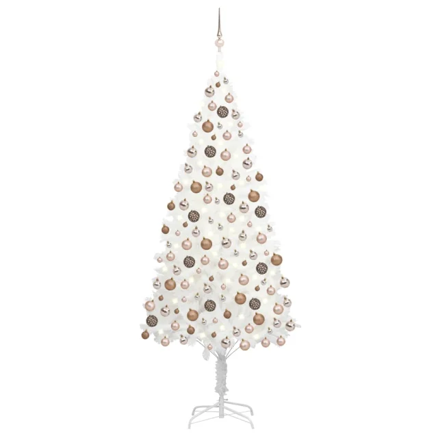 Umetna novoletna jelka z LED lučkami in bučkami bela 210 cm